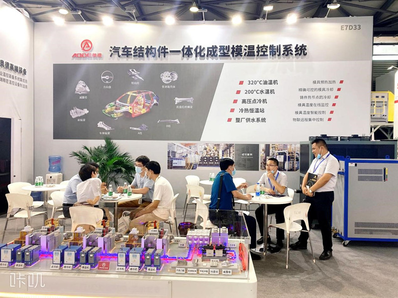 庄闲研制开发的200℃高温水温机具有温度控制范围宽、温控反应较快的特性,主要针对汽车结构件,以及大型一体化压铸成型工艺,该机型在此次展会期间得到广大客户的关注和期许。